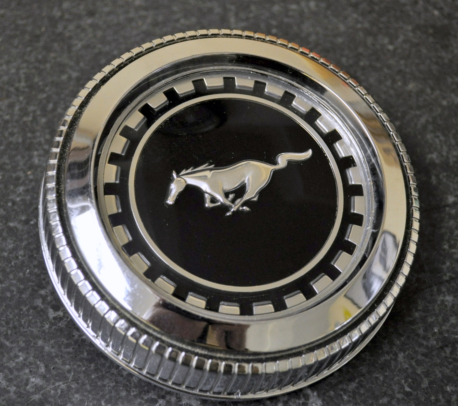 No, close though. It's the flashy gas cap for a '73 Mustang, they kept stealing them and this one never went on. It'll go on eBay.