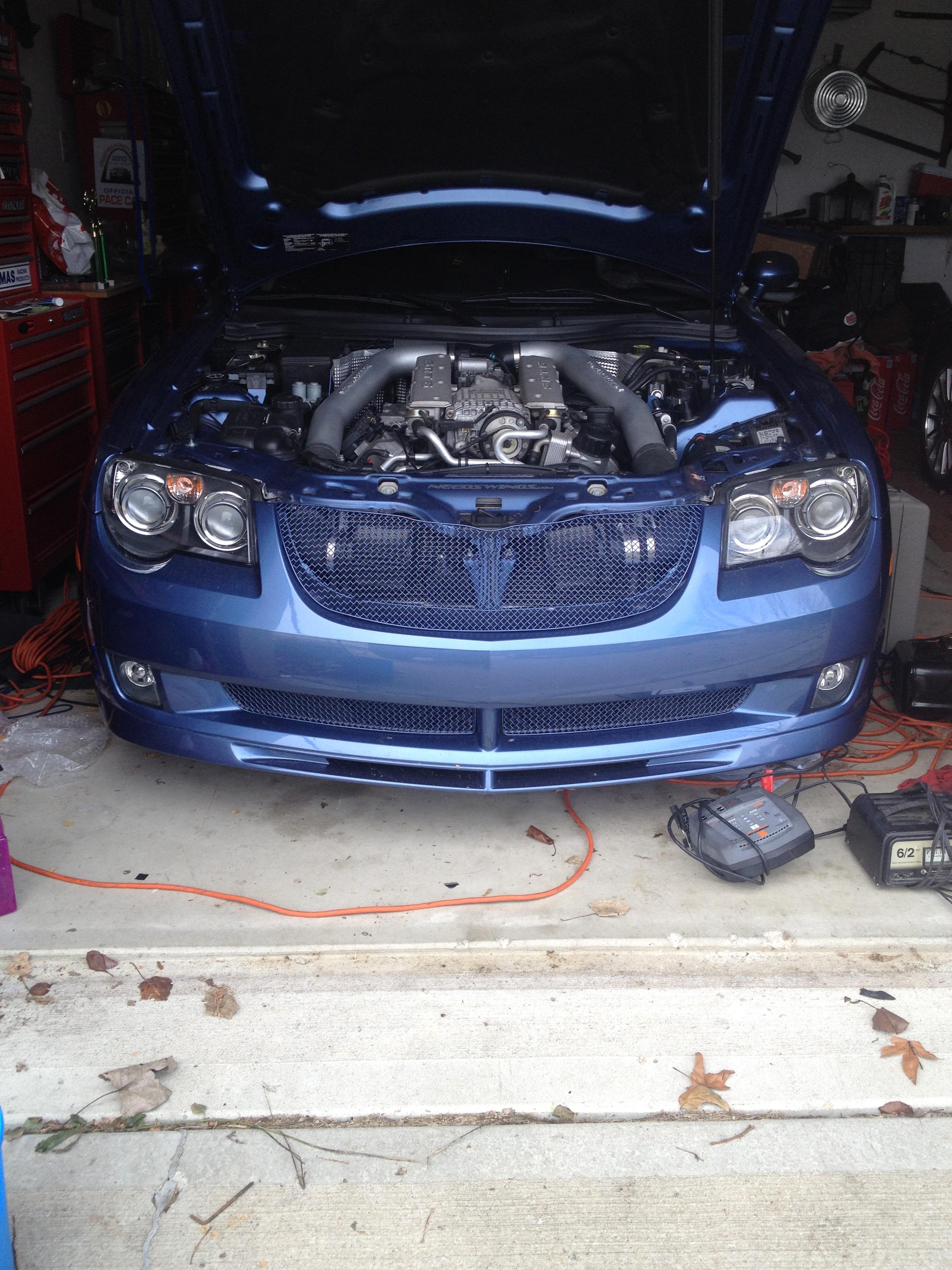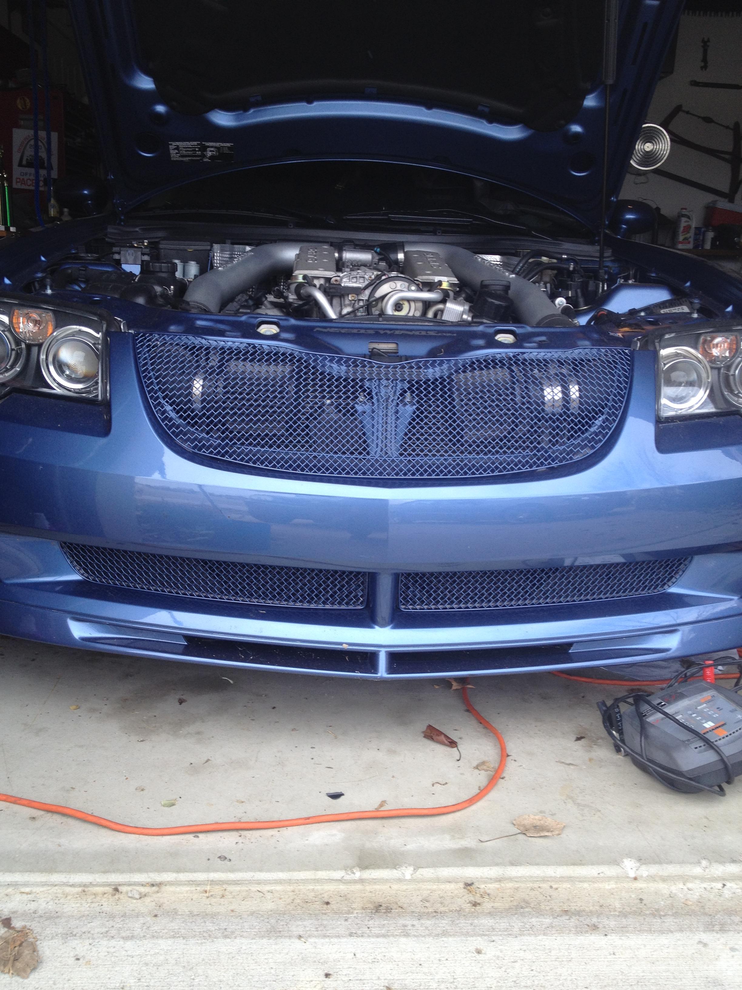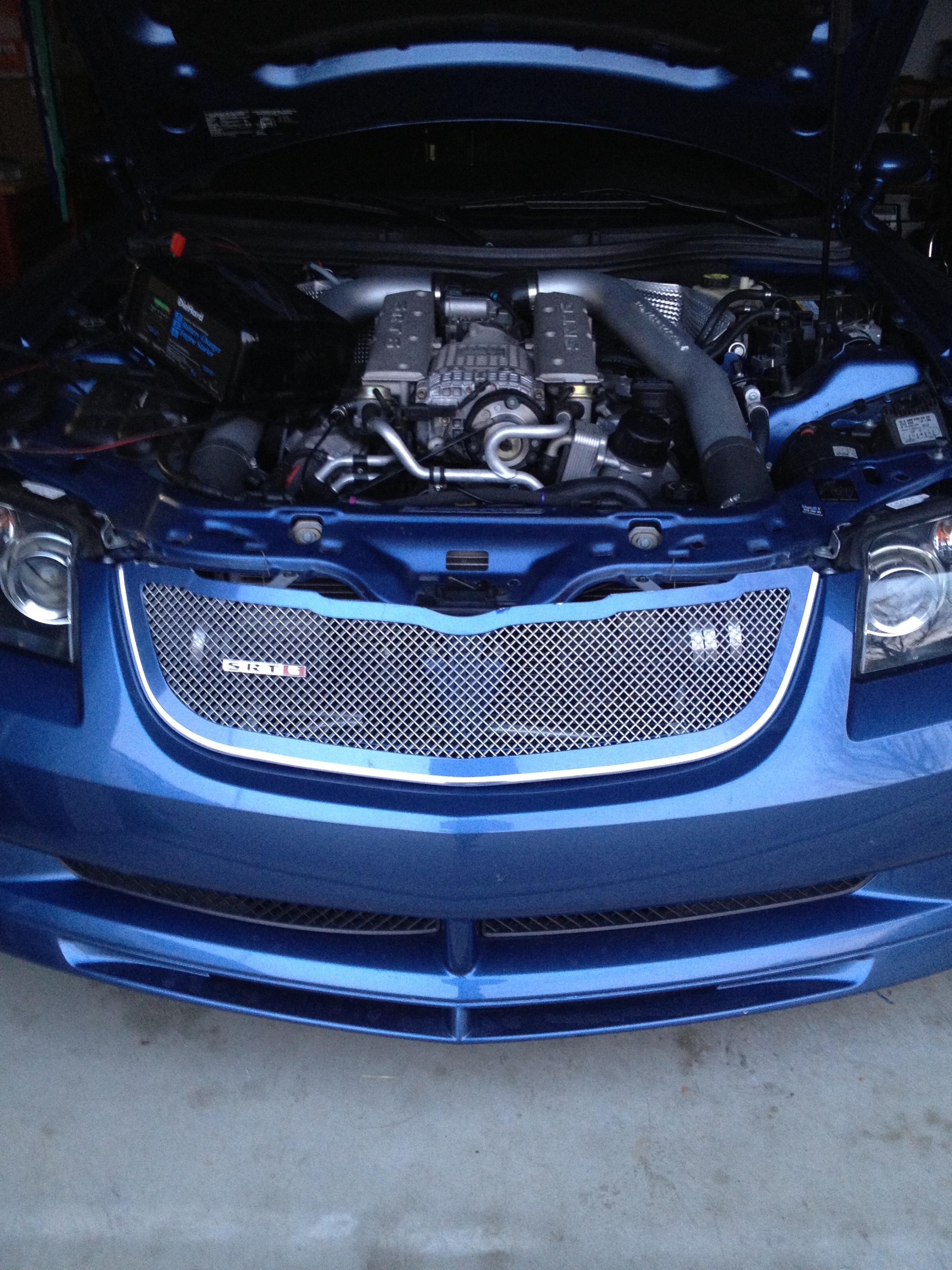 Attached photos. The camera does not pick up the wire in the grilles, therefore it make everything in the background stand out. That isn't the way they really look. They look great. I still have to attach the SRT6 emblem and paint my hose clamps black. Too cold today. The other photo is for Anthony (Grip Grip) to look at. He's looking for a one of these as a DD.