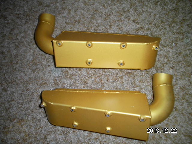 They are gold (the stock color of the thermal coating that Rob puts on them), but they can be painted. I painted the DCAI black, I was planning on doing the same with these, but never got around to it.