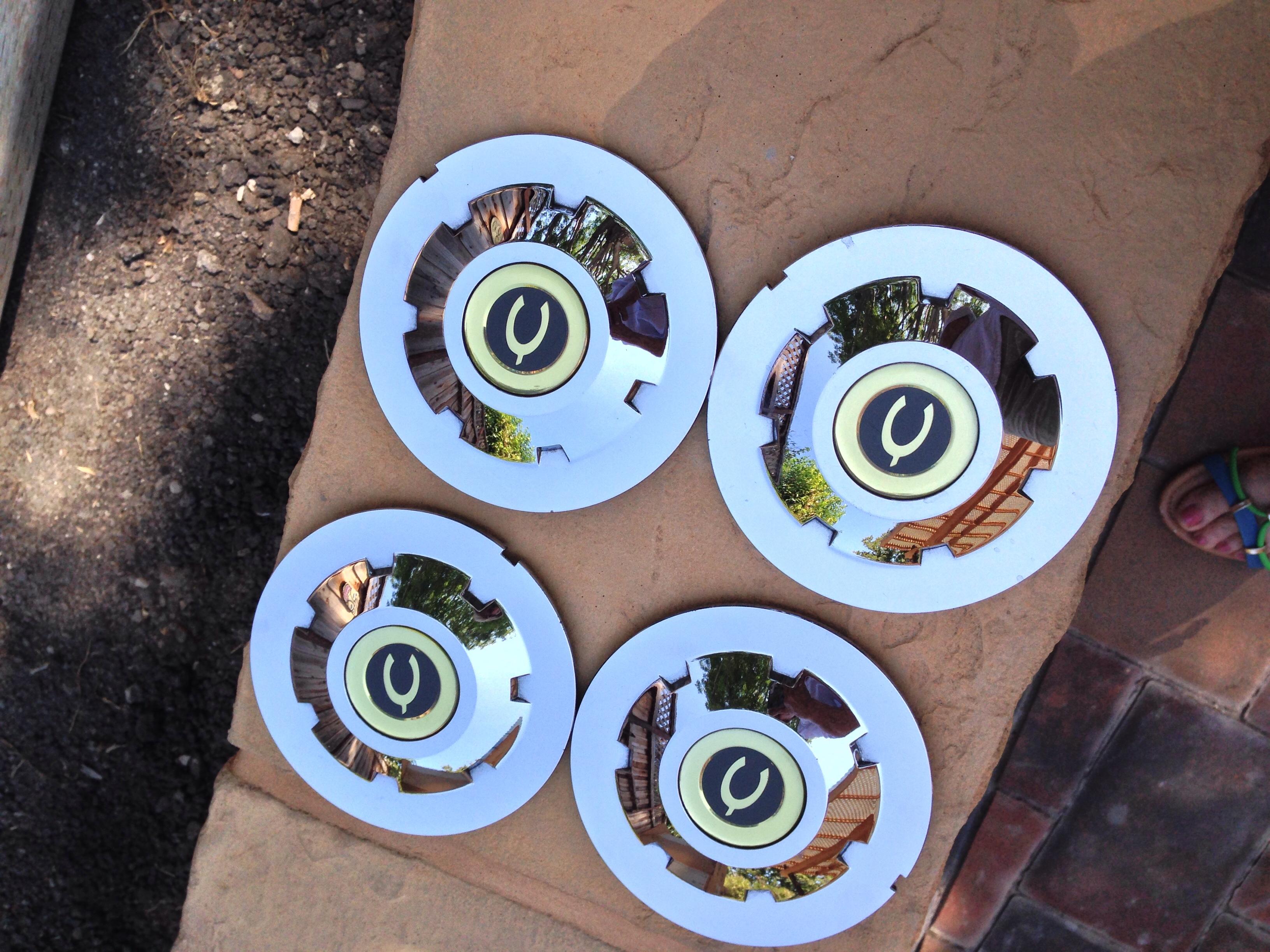 4 polished center hubs for all years of Chrysler Crossfire. These are spares I kept in the garage long after I sold my 2004 Limited Coupe Crossfire. Also included are 4 original lug nuts that were on the Crossfire before I replaced wheels.