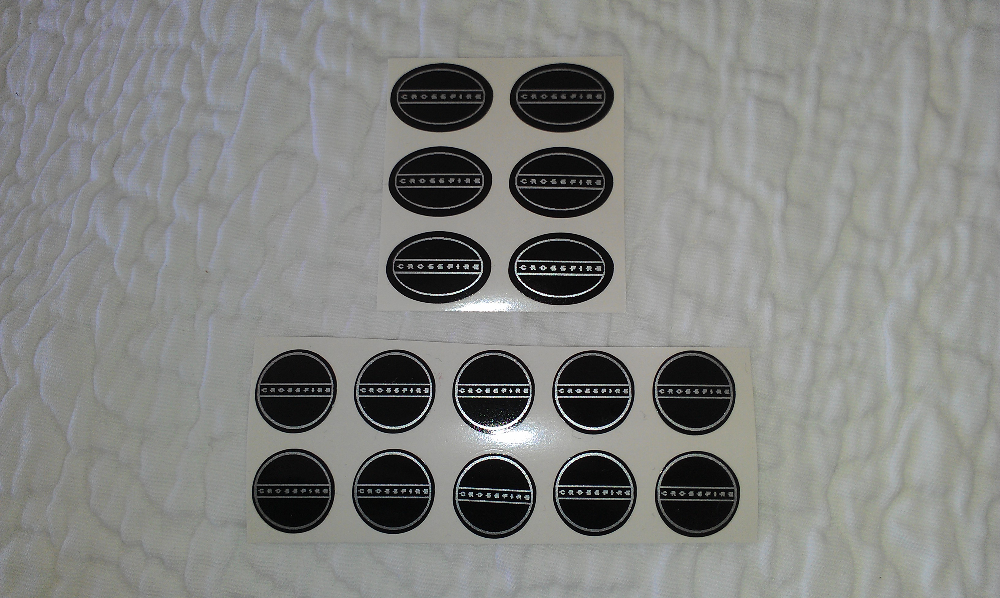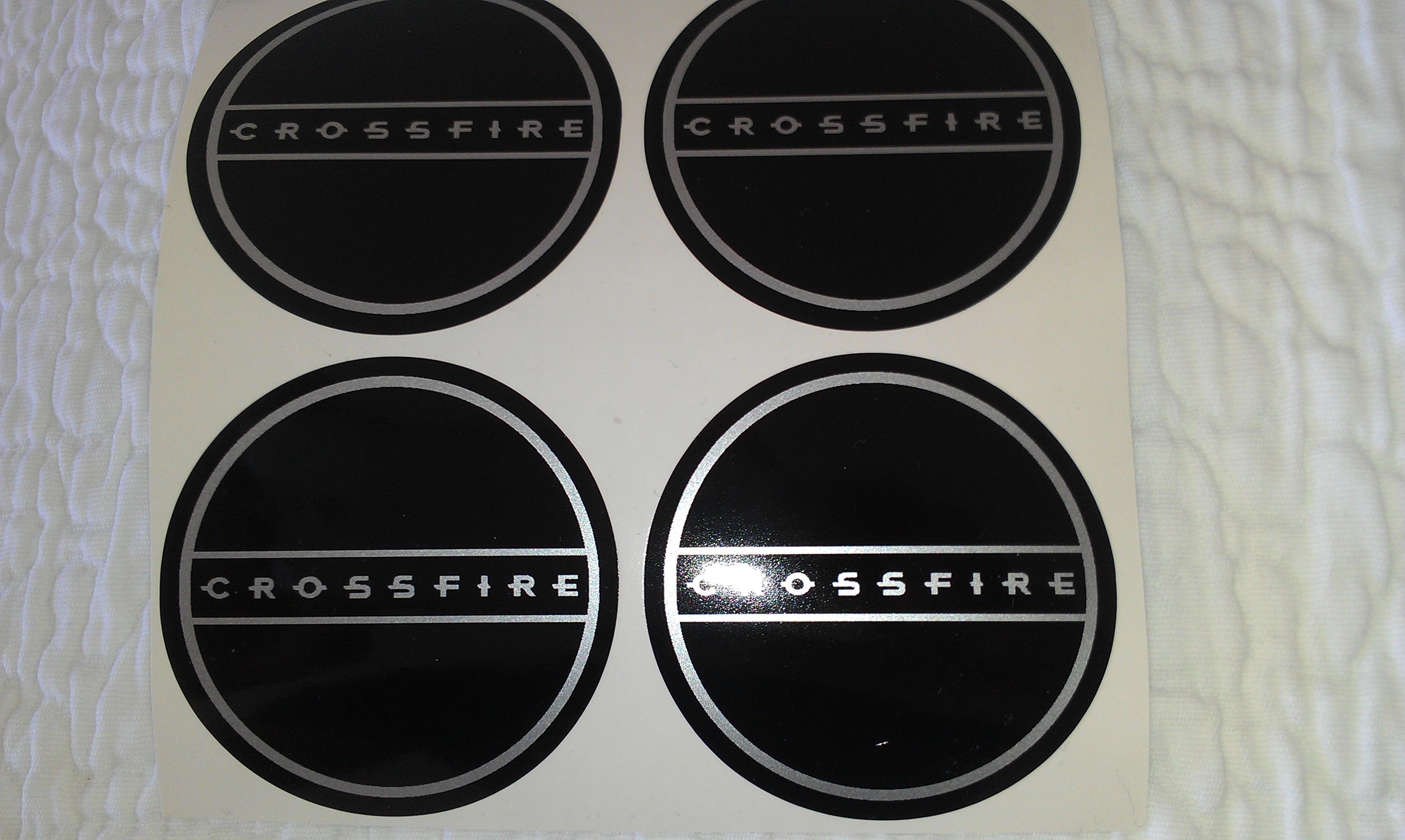 Hi, I ordered a set of custom made badges from Andrew a few weeks ago. Due to the need of a bigger car (familiy expansion), I have in the meantime decided to sell my crossfire and the set is unused. Therefore, I am wondering if anyone here is interested in buying them. I paid USD 75 for the set (plus USD 5 for the shipping) and am willing to sell them for USD 40. drop me a PM if you are interested. The set includes all decals for the wheels, front and rear, key ****, steering wheel plus spare ones.