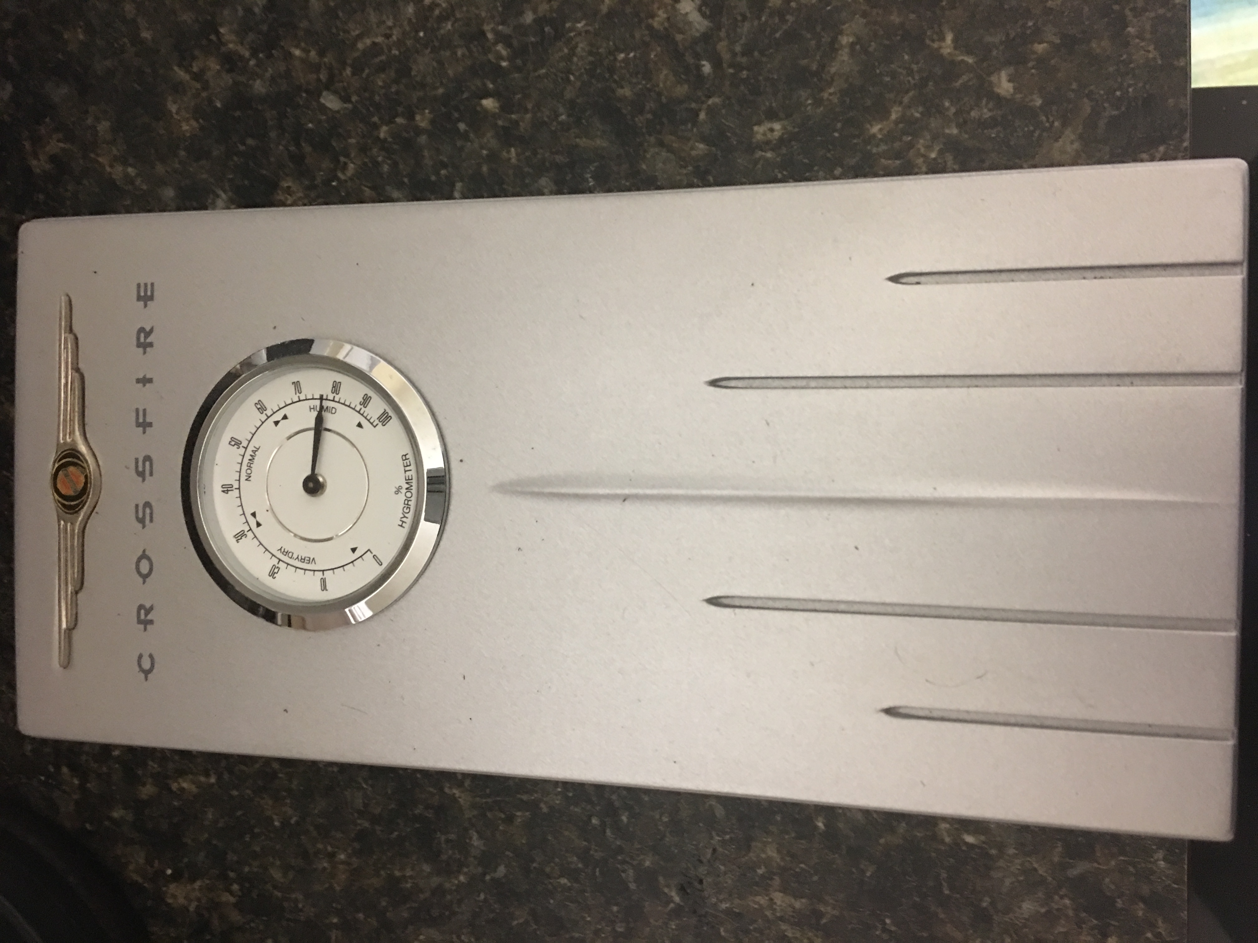 The "humidistat" is a hygrometer and is very accurate in it's simple construction. I have other desktop and travel humidors but would venture to guess fresh cigars would keep at least a week in the car. I left my traveldor in the 6 for two weeks and all sticks were fresh. Mind you, this is in Florida heat and humidity.