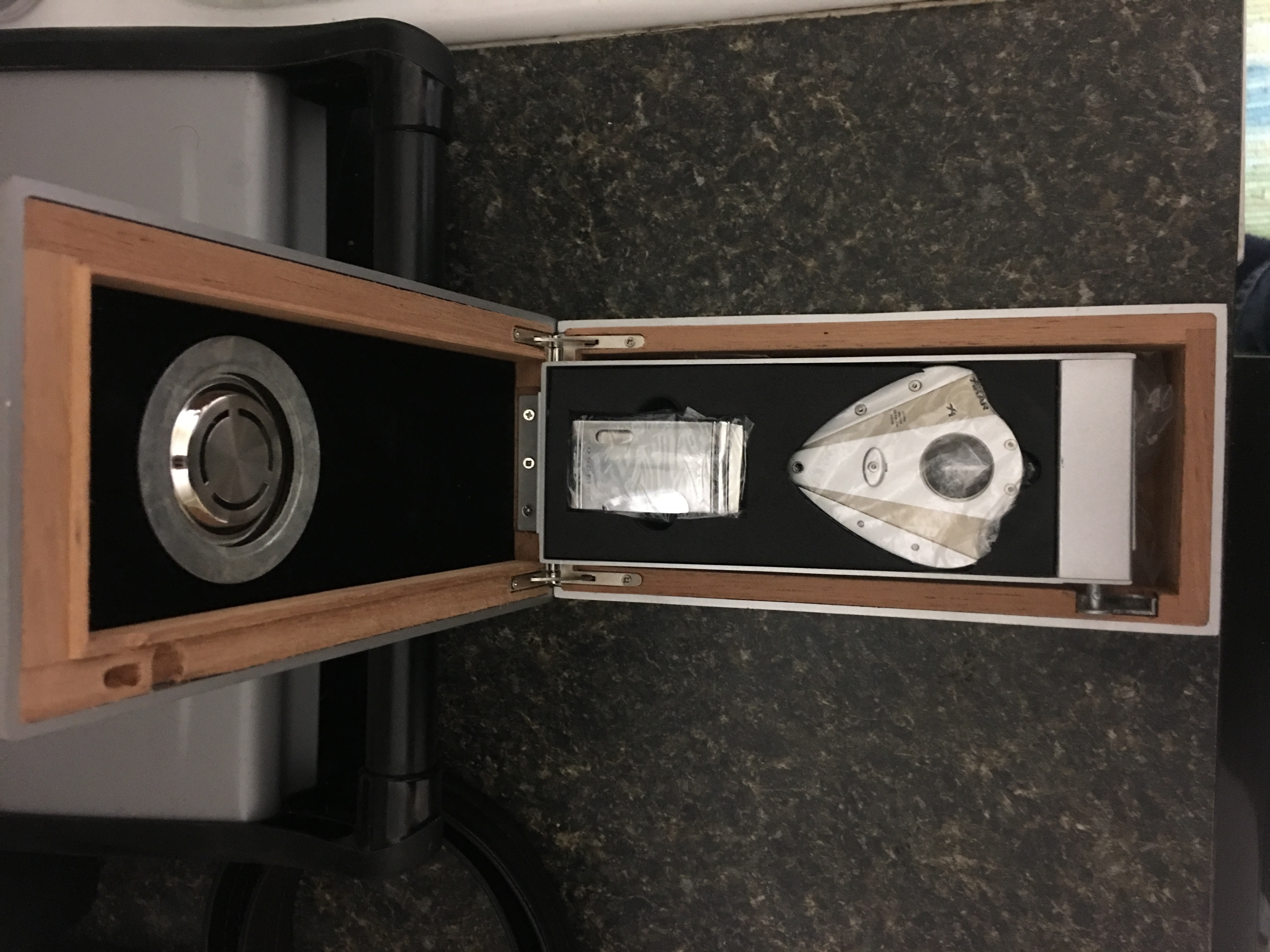 PS, it would take no less than $450 to get mine. Lighter has never been filled, cutter never used. Still stinks up a room with cedar scent upon opening...high quality $#!+ folks!