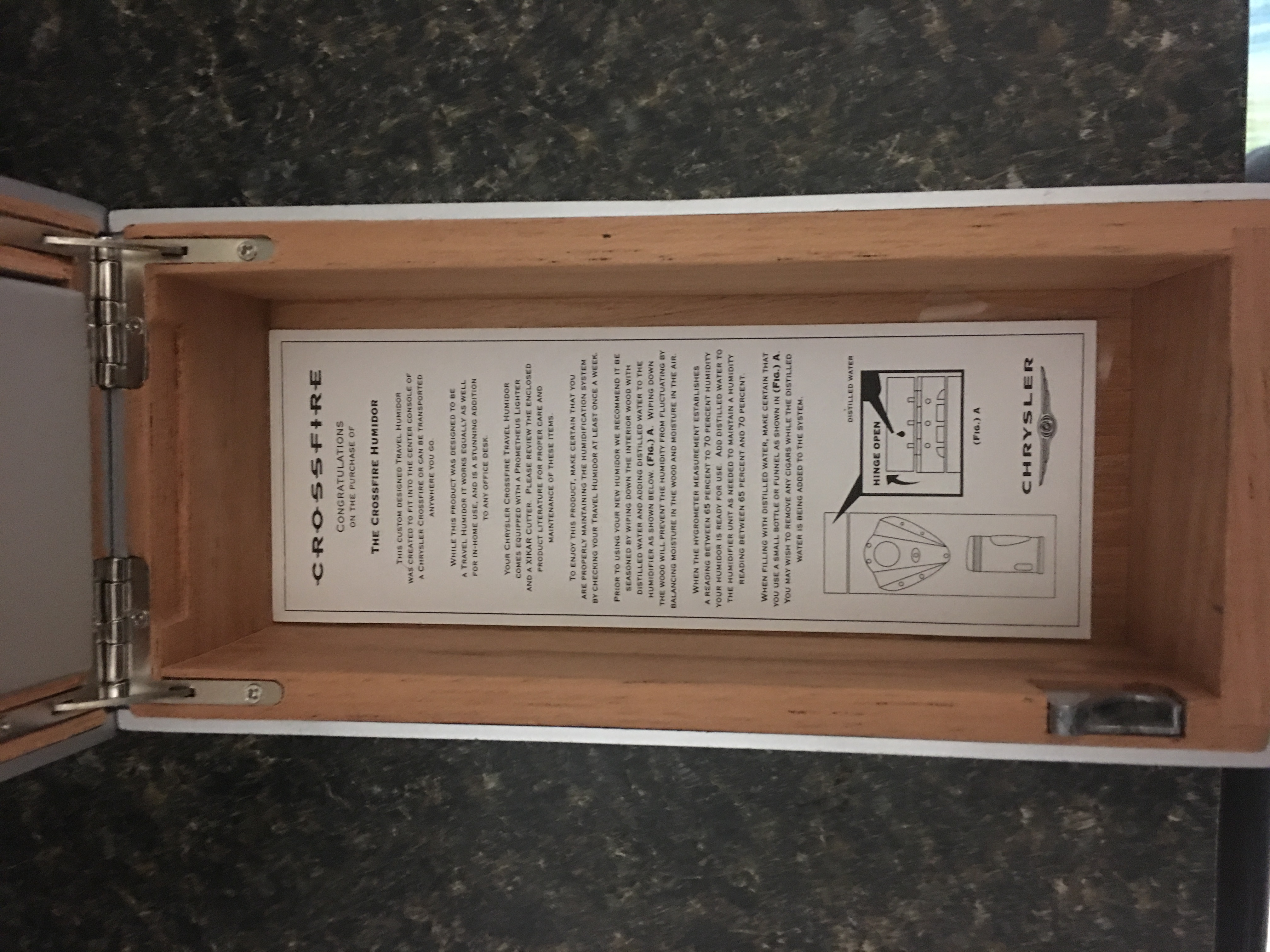 Let me help you out, mine happens to be out of the box at the moment. Behold, the almighty coveted Crossfire humidor, complete with Xikar cutter and Prometheus lighter....