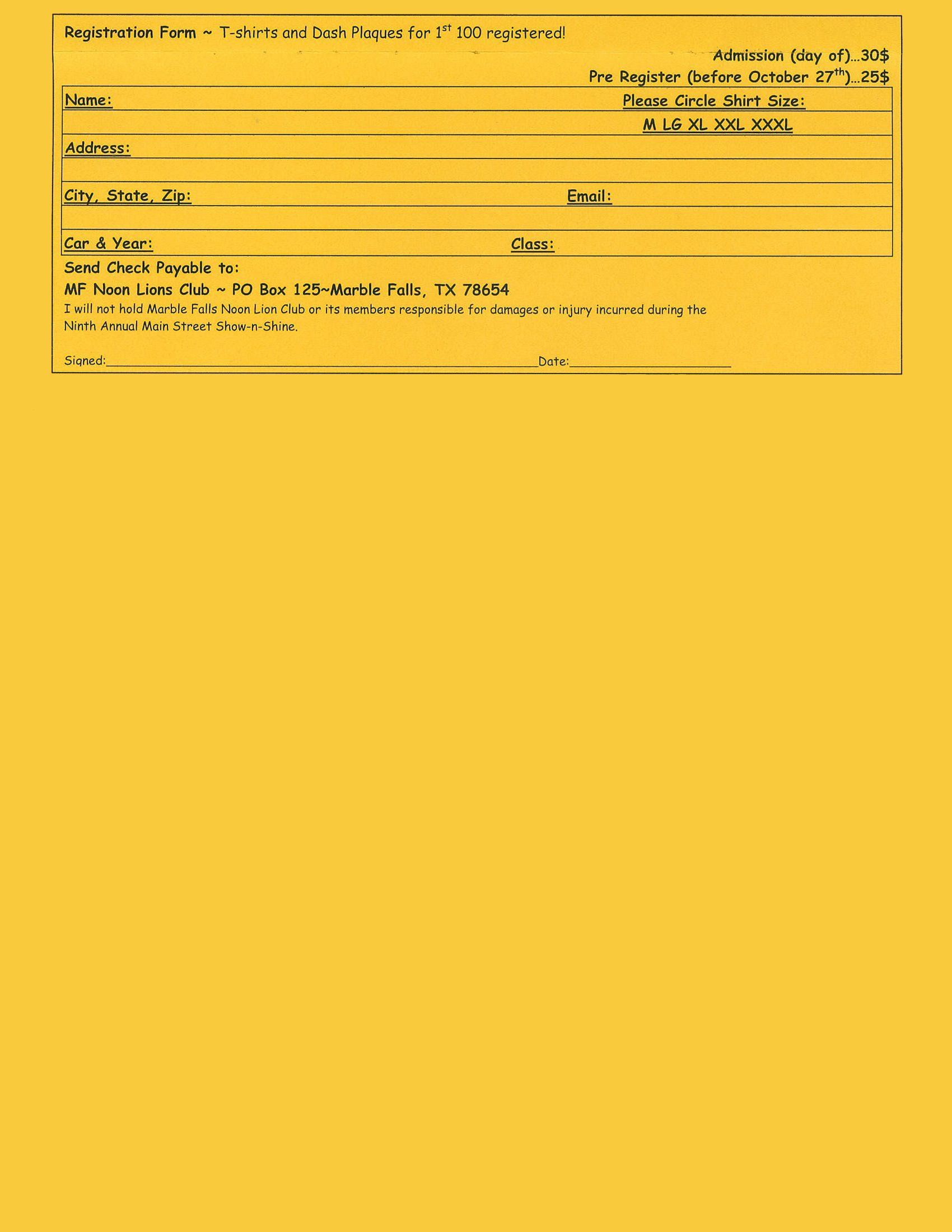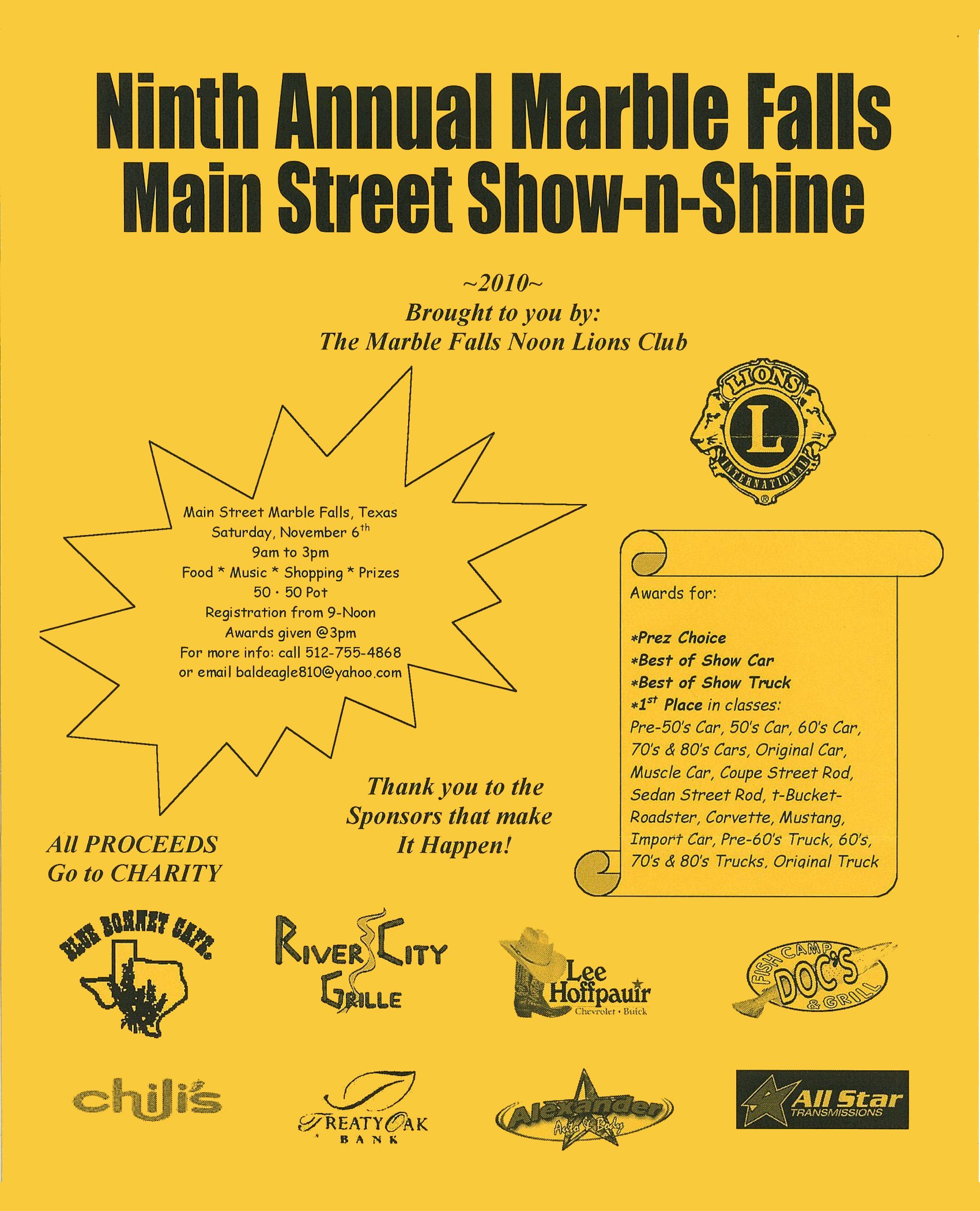 Paul, I will likely be in Marble Falls on the 6th as well- my 'other' car club (Hill Country Car Club) will be showing some of their cars and I will most likely show mine as well. It's a show and shine and not real formal, I'm told.