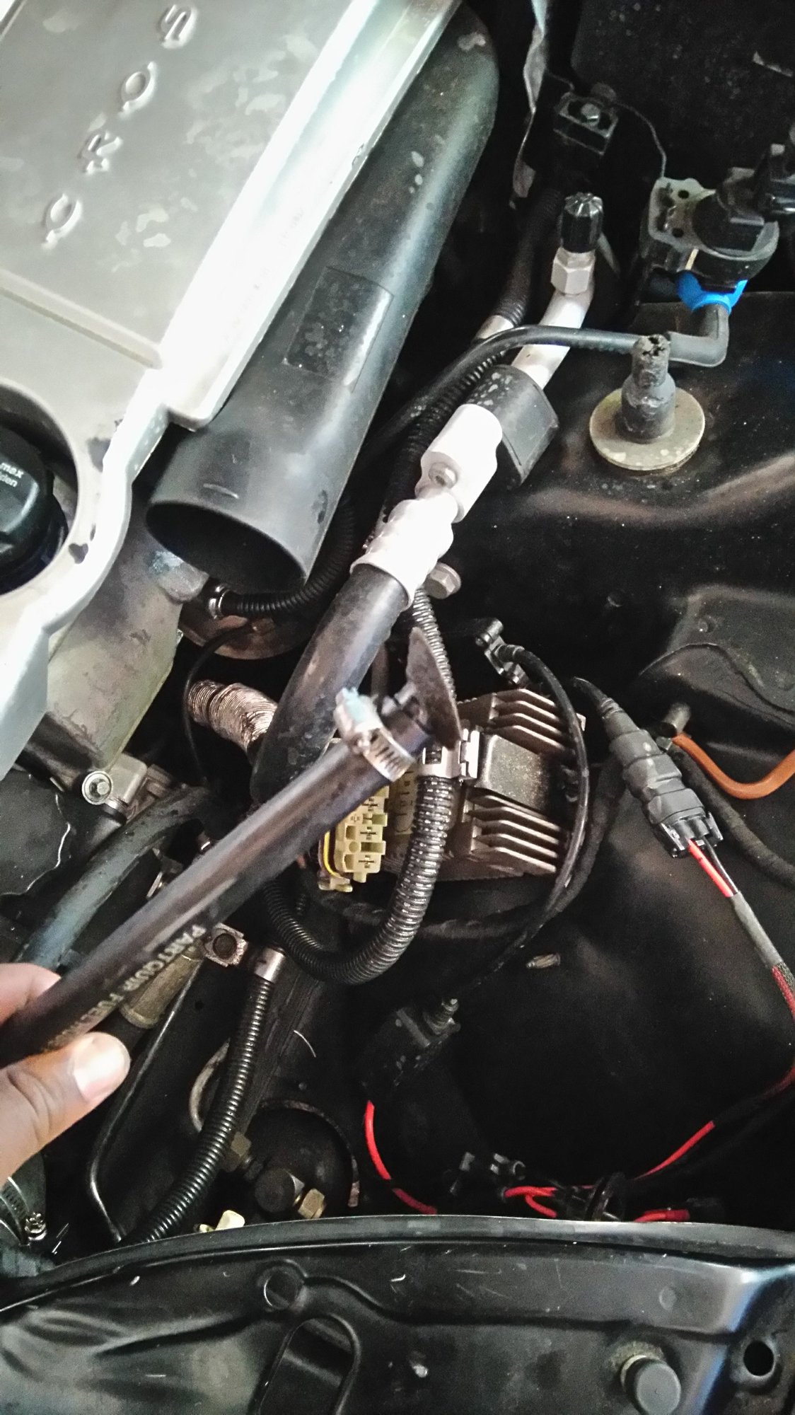 I found the origin of the pipe. Indeed it originates from the power steering reservoir. There isnt any fluid in the reservoir. Suprising thing is that the power steering and the fan stopped working at exactly the same time. Initially I thought that the serpentine belt had snapped because the power steering stopped working AND the car started overheating. But it seems that it is two separate incidents that just coincidentally occured simultaneously. Is it possible to get the reservoir separately since the pipe broke off there or should I just glue it back on with some industrial grade adhesive since the break has a large enough surface area to allow this. Also, is the power steering pump and reservoir from the R170 SLK or is it different? Last question, is the fan control module also from the R170 or is it unique to the crossfire?