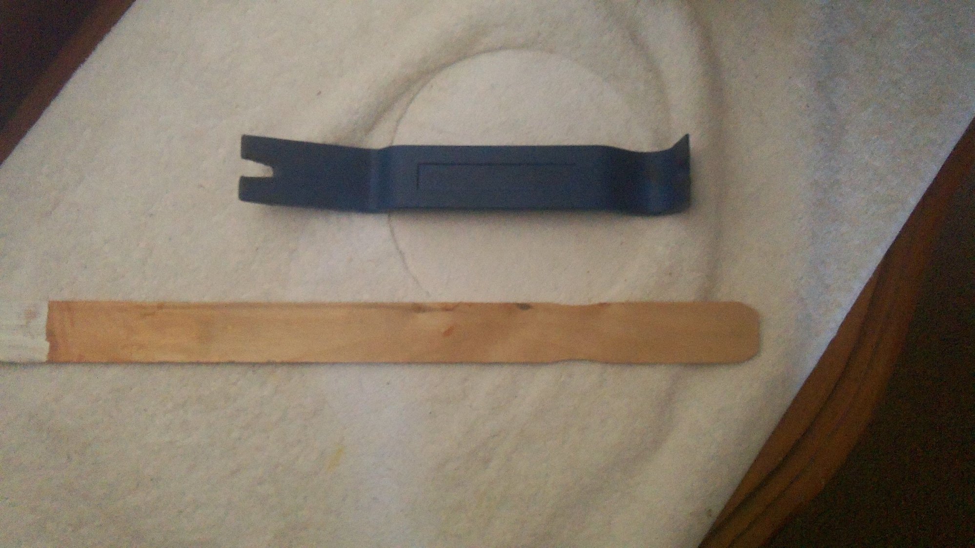 Your pick: a paint stick available for free from local hardware store or an interior pry tool available from most auto part stores as part of a set.