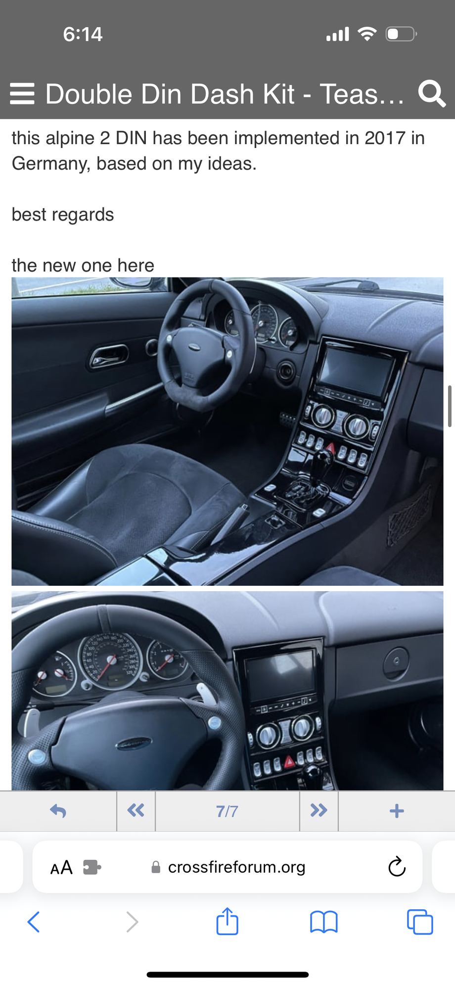 I just noticed how many install photos were in post #1, my car is the first one. I don’t remember how much I paid for those bezels but I don’t think I would hesitate to pay $250 for bezels, maybe more. When I drive one of our other Crossfires I really miss apple car play for music and maps. I also added a backup camera which is nice coupled with the larger display.