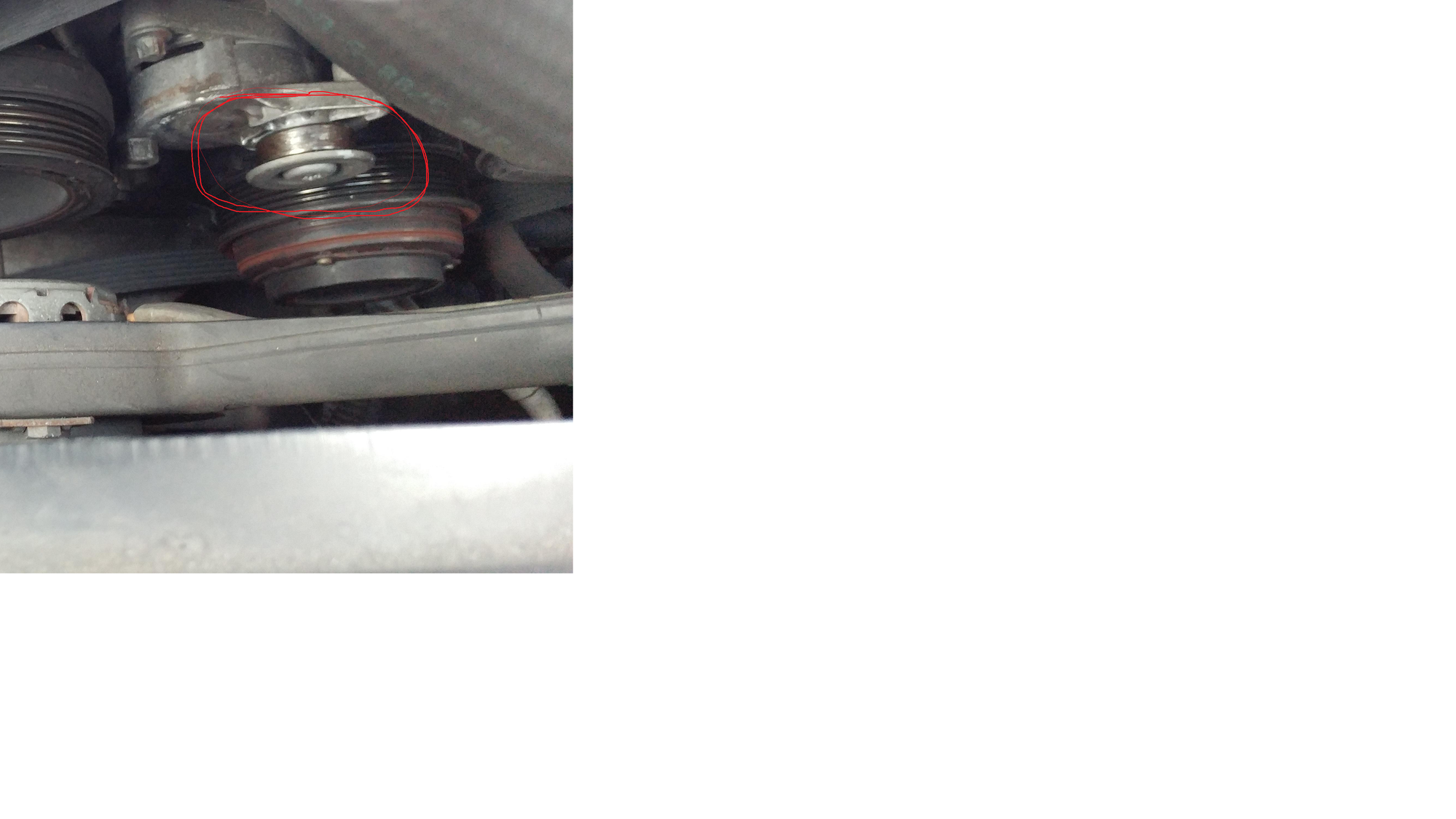 Thanks everyone for the awesome replies, So if I get just the pulley how easy to replace or if I get the whole assembly what will it cost. Looking at Rock Auto for the belt tensioner pulley and all shows a grooved one not the smooth one as shown in the posts here