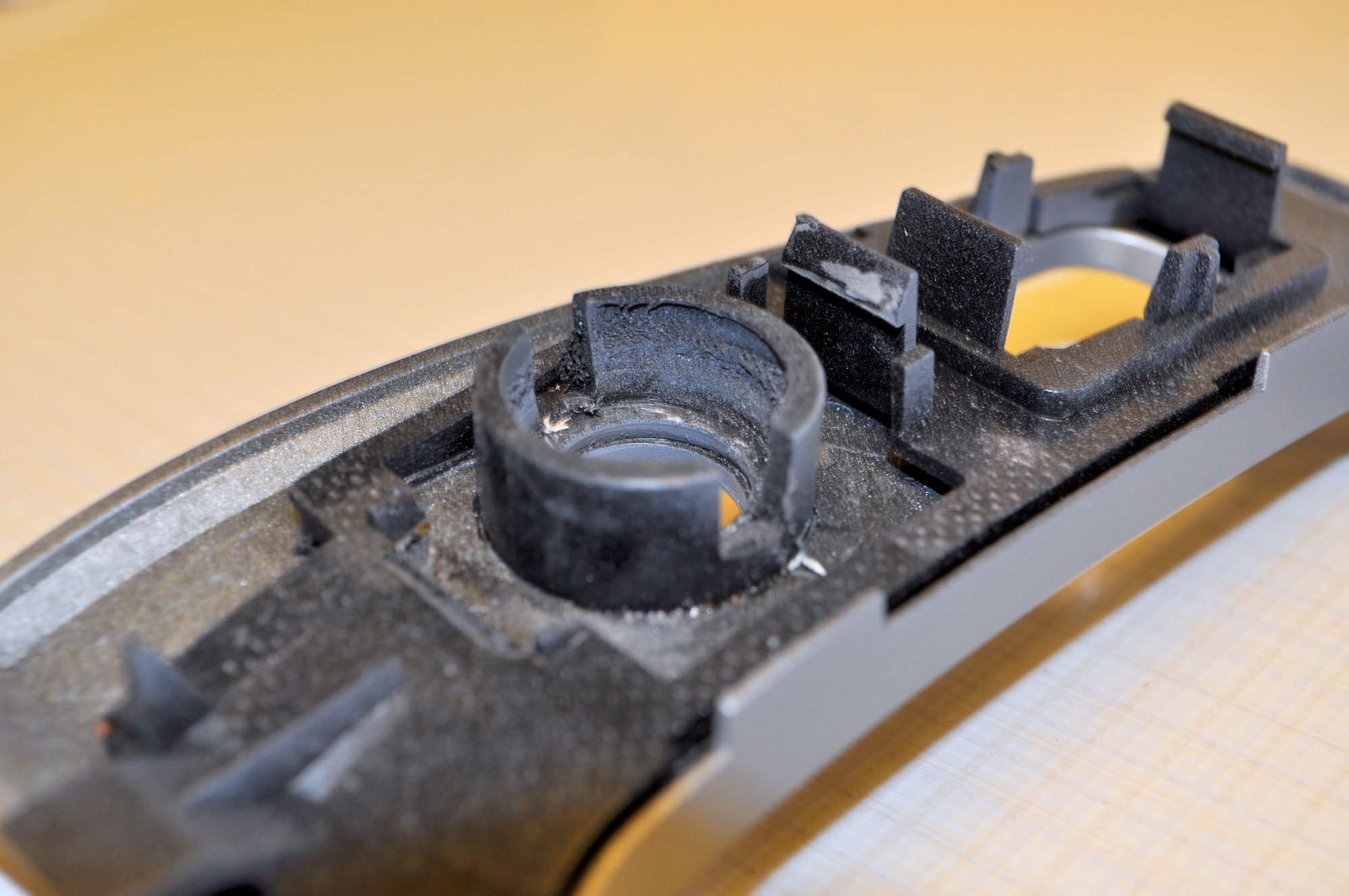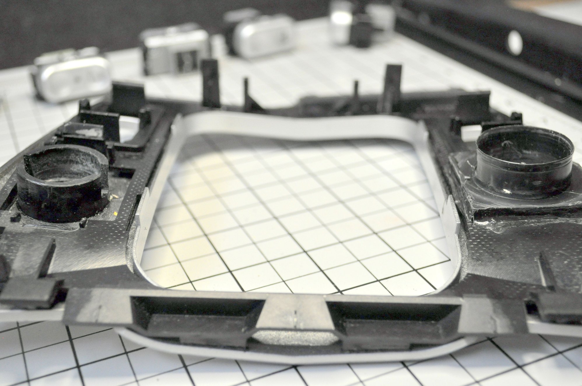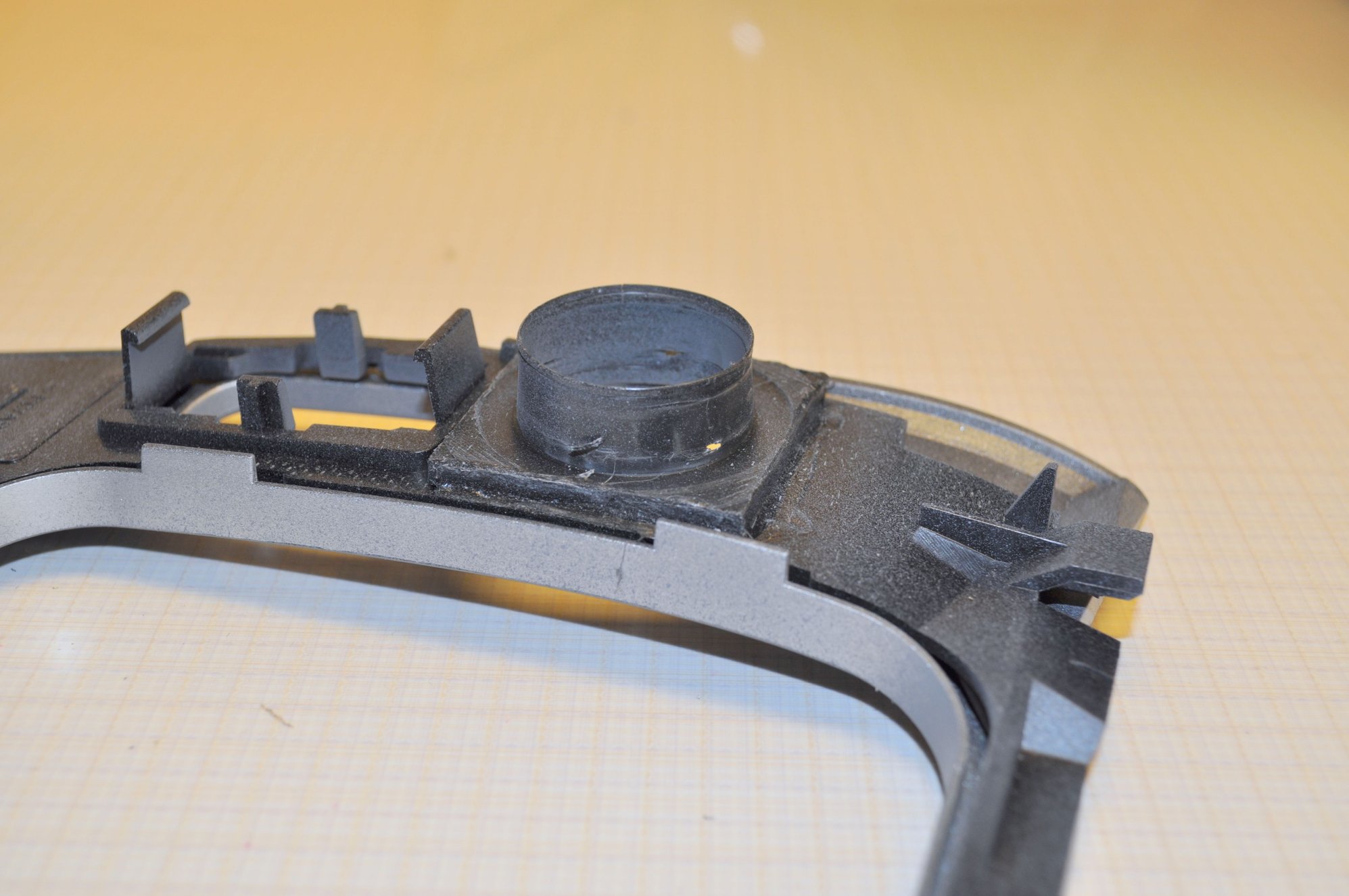 The new bezel was cut in two places, one cut just above the switches and two cuts that went through the single DIN aperture, this cut was just below the two locators for the bezel.
