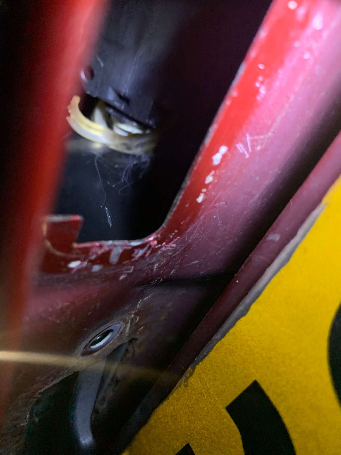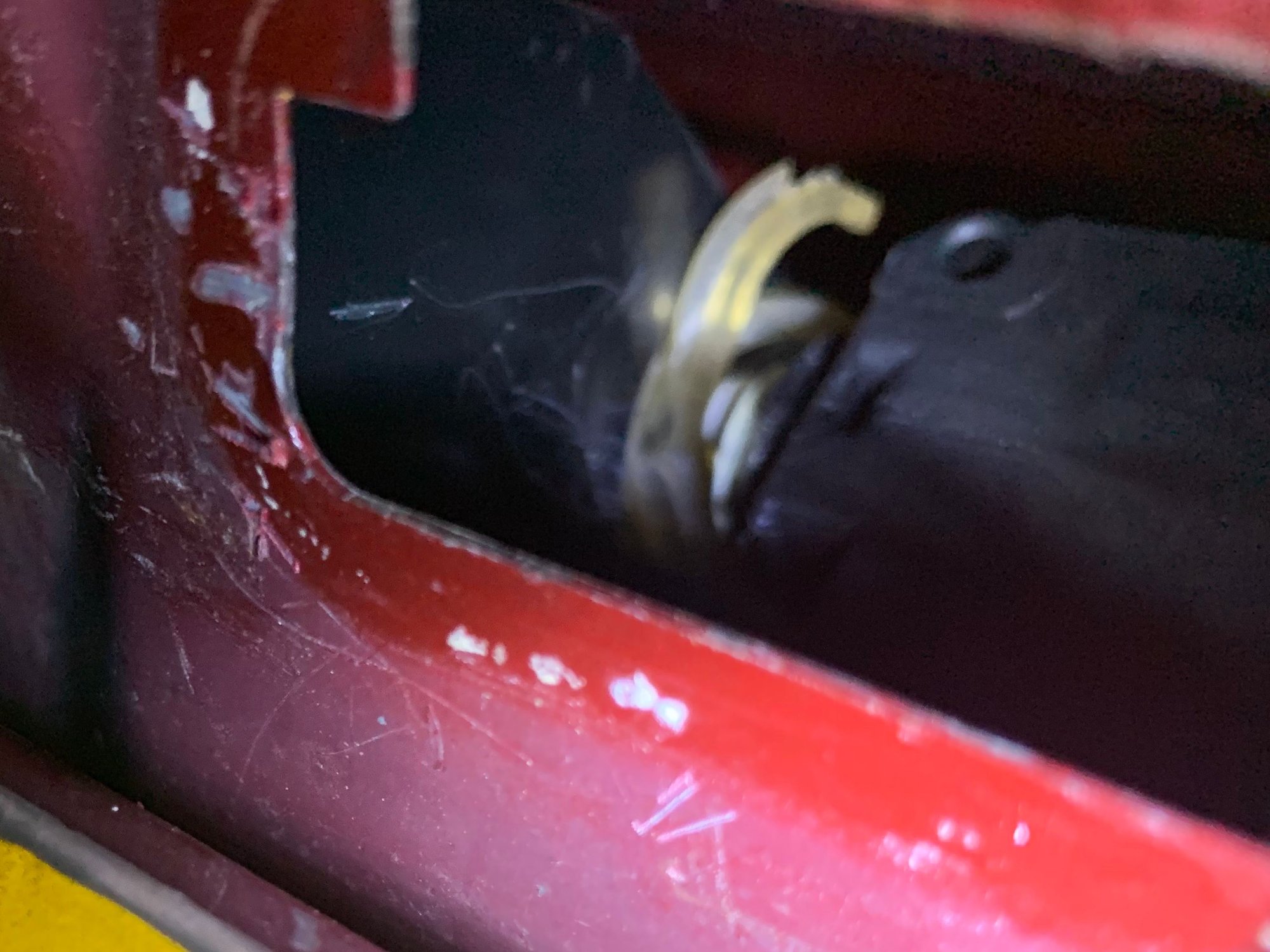 I know the plastic pawl on the end of the emergency release was broken off in there, and now I think that, when I crawled in thru the bow/lid opening, I pulled the emergency release and broke the pawl.