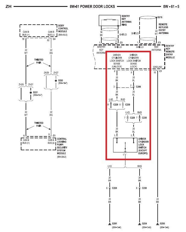 Well here is part of page 8W-65-4 of the '04 service manual. Looks like I can cut one BR/GY wire and prevent the door-open unlock function. That would allow locking from the console but might also prevent the dome light from coming on.