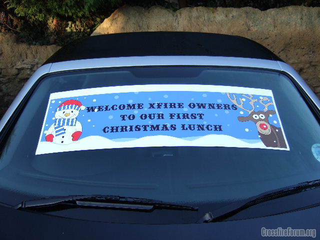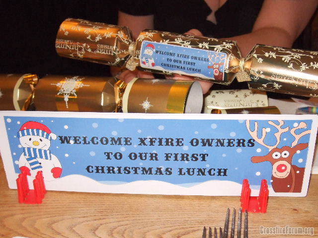 The welcome greeting located on a Xfire in the car park..Table and cracker decorations...A good time was had by all. Beeblebrox Paul and Hairydalek Paul, both took pictures at the afternoon shoot...Ken.