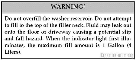 Wife: "the washer bottle is empty on the Crossfire"