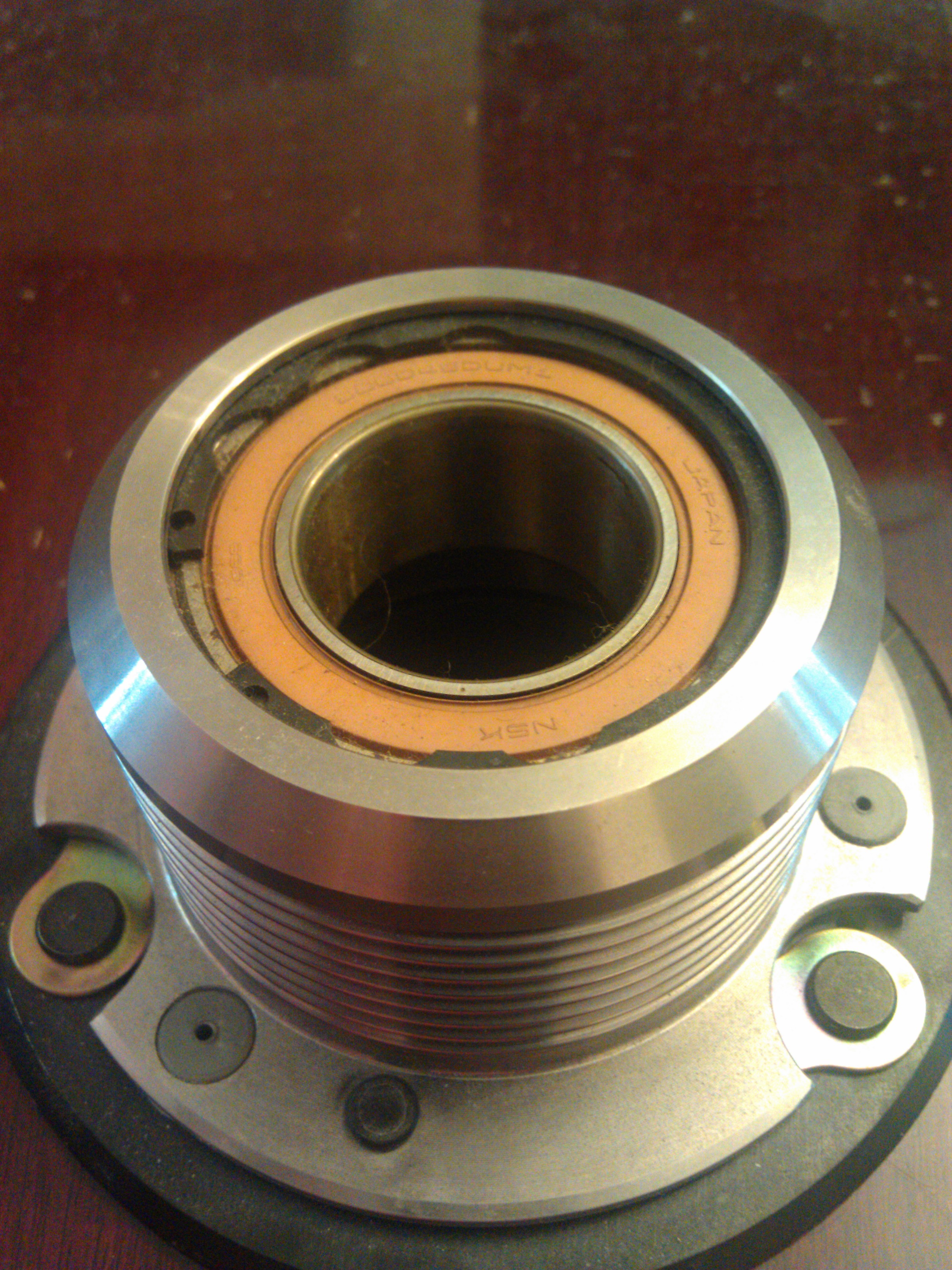 The larger wheel/pulley closest to the supercharger will spin freely, then there is a gap of approx .5/1mm to what I assume is the clutch plate. this plate will not rotate at all no movement but will travel in and out if you know what I mean, this is what I think the chatter is.
