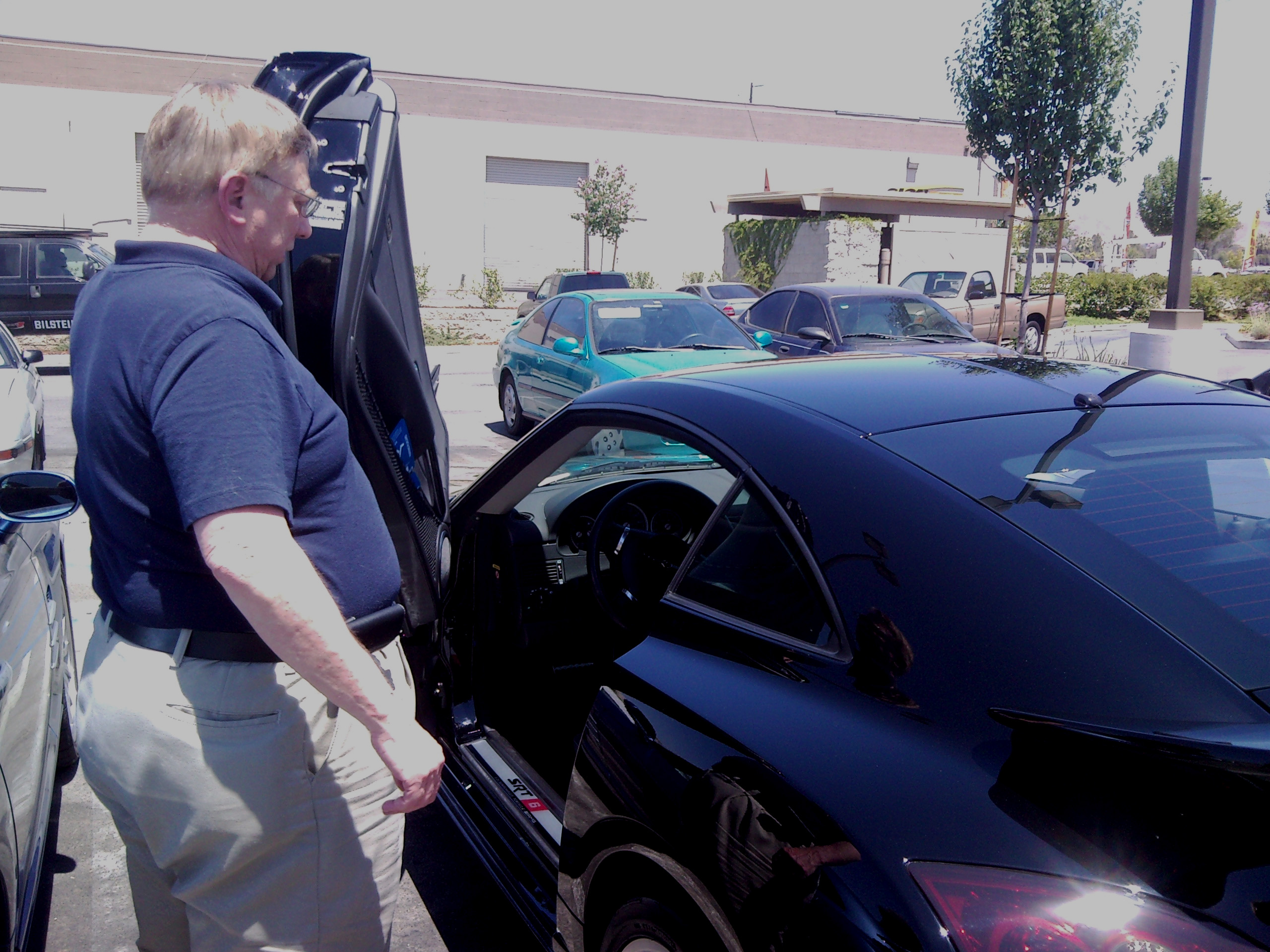 We met up with SRT Six on the way to Idyllwild. He has his black SRT6 tricked out and then some. Note the lambo door. Also note the disappearing act his license plate does. I'll let him post the details behind this little bit of engineering marvel.