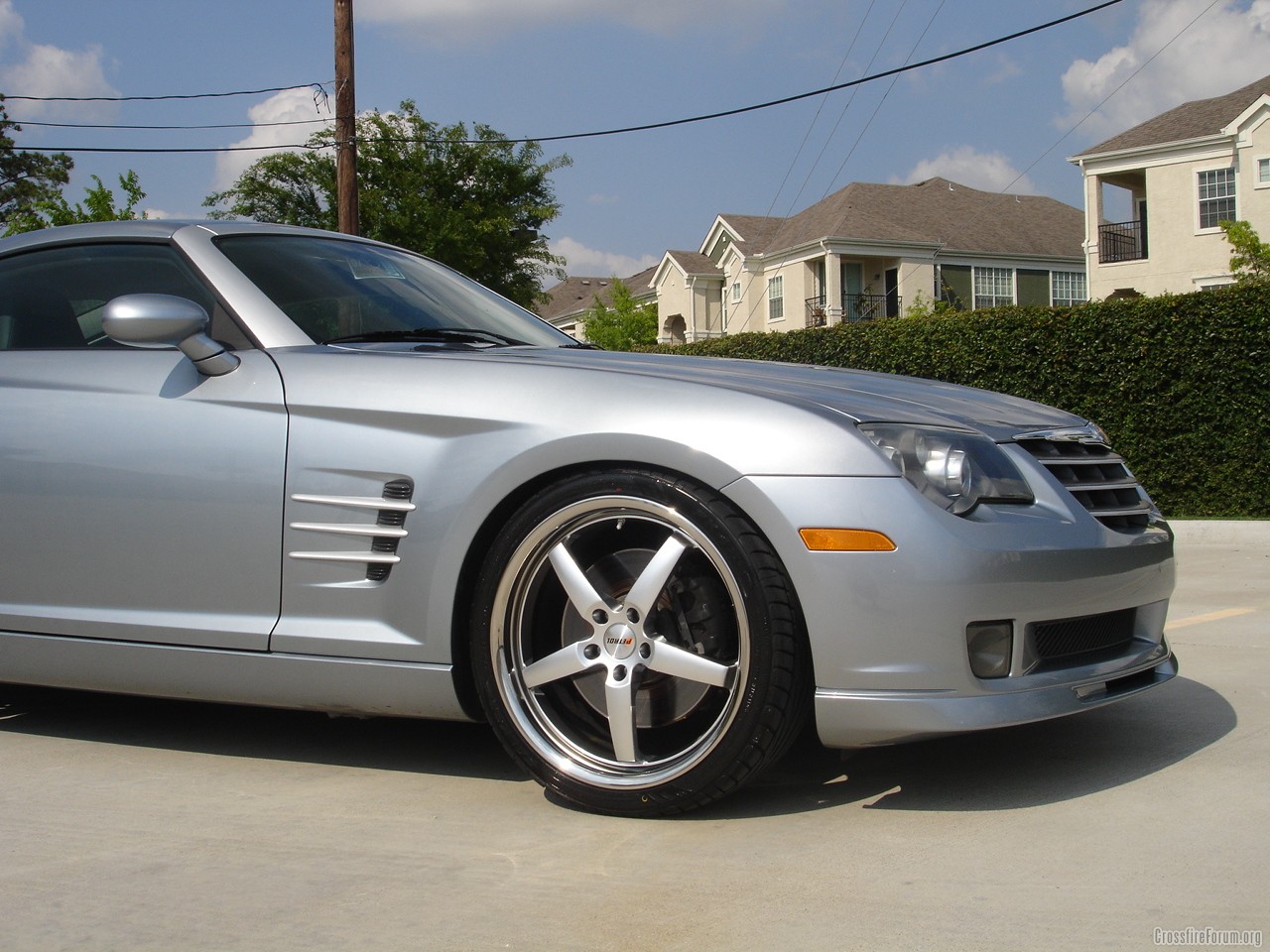 new Crossfire, I highly recommend going with 225/35/19 for the front tires, you will still have some rubbing but a lot less. The next few paragraphs are my answers to a few other members on the same topic.