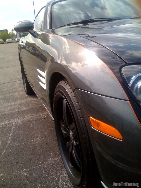 looks awesome, the paint and pin stripes really set it off, as with all XFs, I do not like the silver accents, especiually on this car, but overall, looks killer. Do you have a guy around Indiana that does good powdercoating? I would like to have some wheels done as well, let me know.