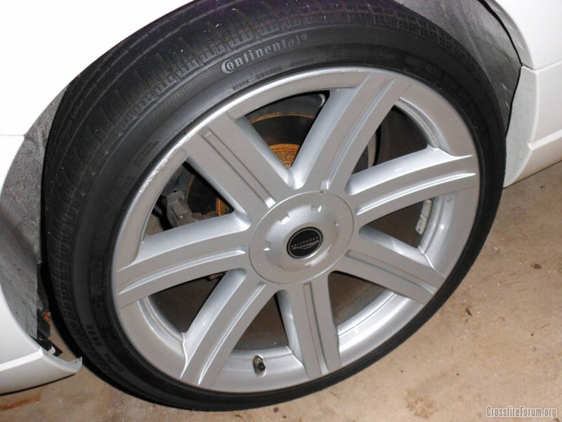 I haven't removed the wheel myself, but I have been told by the local Chrysler dealer (who has a specialist that works on Crossfires, thank god) that the rust will work itself off just by driving the car over time. The problem is, this car is garage kept five days a week. Doesn't leave much time to work the rust off.