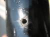 Drilled a hole in the center of the bushing to allow it to be lubed. I started with a small abrasive bit in my Dremel. When the hole was 1/4 inch deep (be careful, the polyurethane melts from the heat and can burn), I switched to a drill bit. I had to run the drill repeatedly on the fastest setting to clear the debris from the hole. I aligned the drilled hole with one of the molded in grease grooves in the bushing.