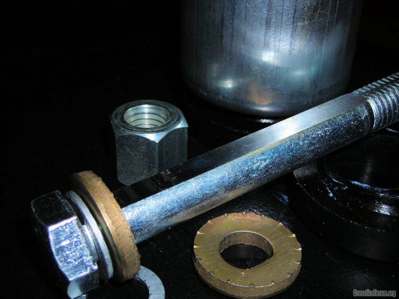James I think the bushing actually rotates around the bolt and then there is a splined washer on the bushing that locks by using the washers under the nut that are splined also if that makes sense .